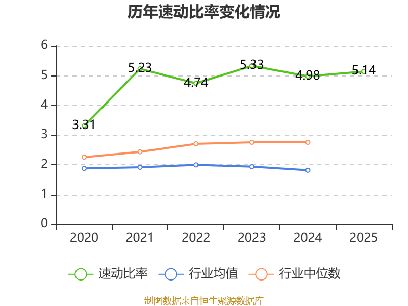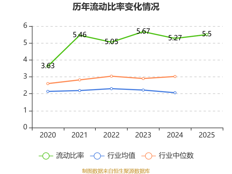 2025年,公司流动比率为5.5,速动比率为5.14。