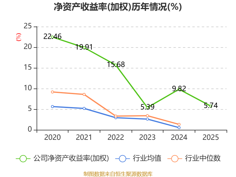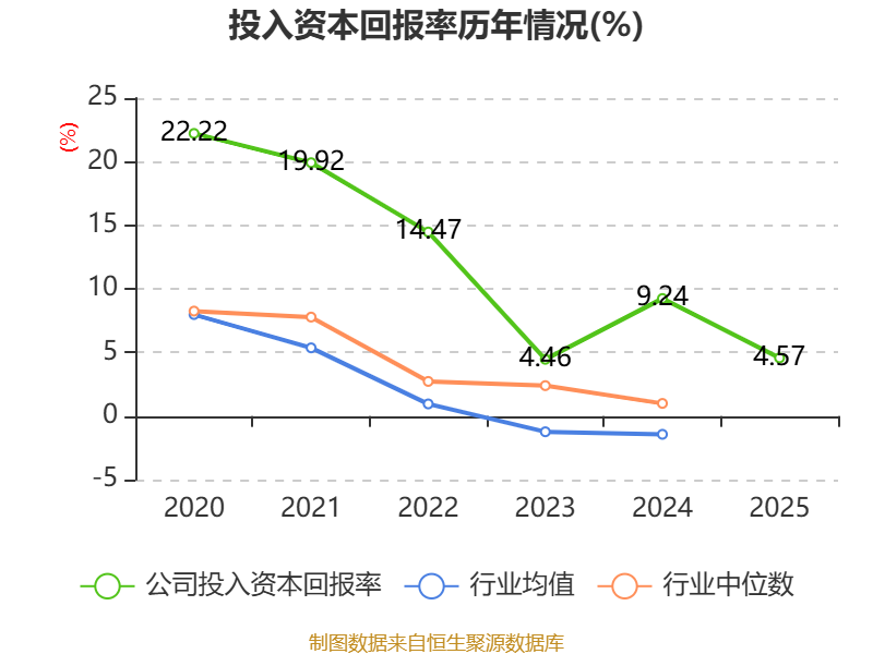 数据显示,2025年公司加权平均净资产收益率为5.74%,较上年同期下降4.08个百分点。公司2025年投入资本回报率为4.57%,较上年同期下降4.67个百分点。