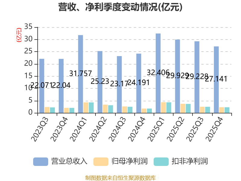 截至2025年,公司经营活动现金流净额为22.17亿元,同比增长2.85%;筹资活动现金流净额-7.24亿元,同比减少8.95亿元;投资活动现金流净额-8.92亿元,上年同期为-21.93亿元。