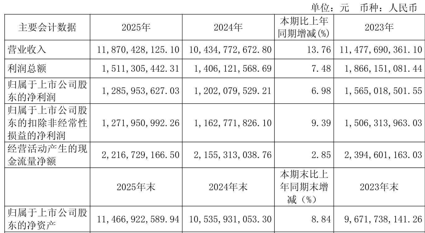 数据显示,2025年公司加权平均净资产收益率为11.69%,较上年同期下降0.22个百分点。公司2025年投入资本回报率为10.07%,较上年同期下降0.41个百分点。