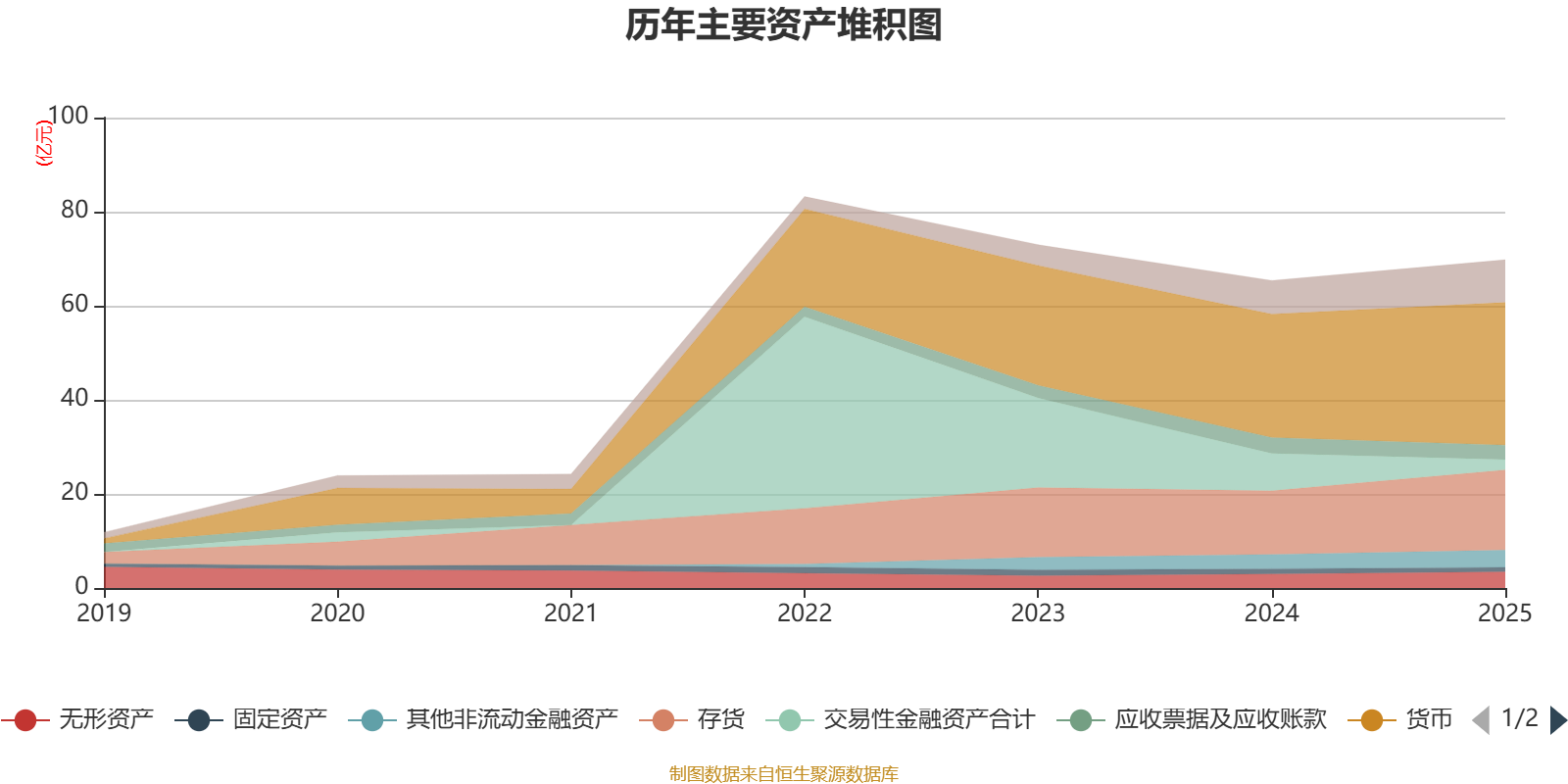 资产重大变化方面,截至2025年末,公司交易性金融资产合计较上年末减少72.36%,占公司总资产比重下降9.03个百分点;存货较上年末增加26.14%,占公司总资产比重上升3.75个百分点;货币资金较上年末增加15.63%,占公司总资产比重上升3.32个百分点;预付款项较上年末增加116.81%,占公司总资产比重上升1.87个百分点。
