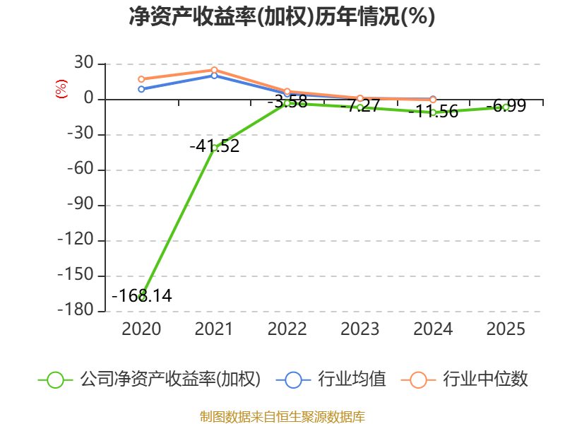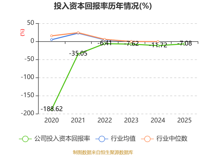 数据显示,2025年公司加权平均净资产收益率为-6.99%,较上年同期上升4.57个百分点。公司2025年投入资本回报率为-7.08%,较上年同期上升4.64个百分点。