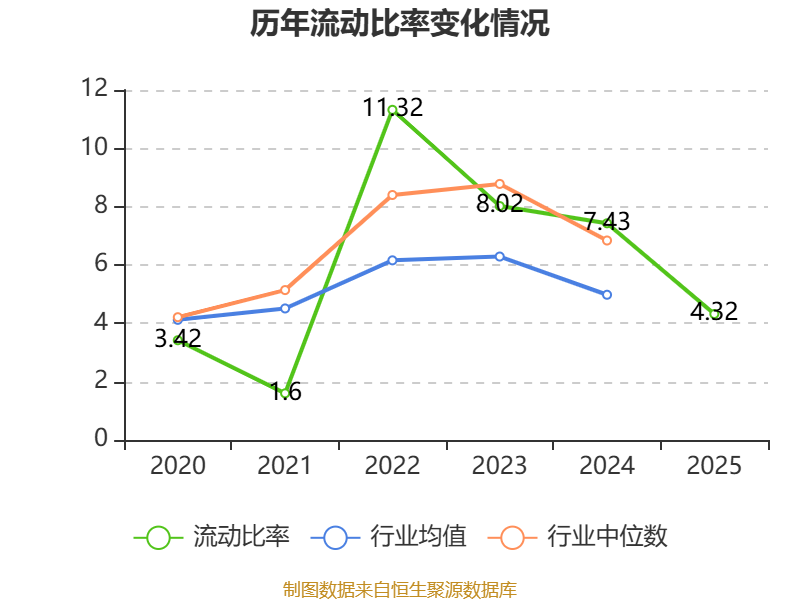 2025年,公司流动比率为4.32,速动比率为3.06。