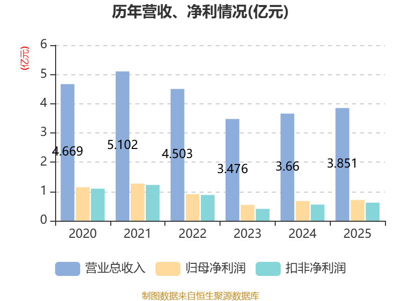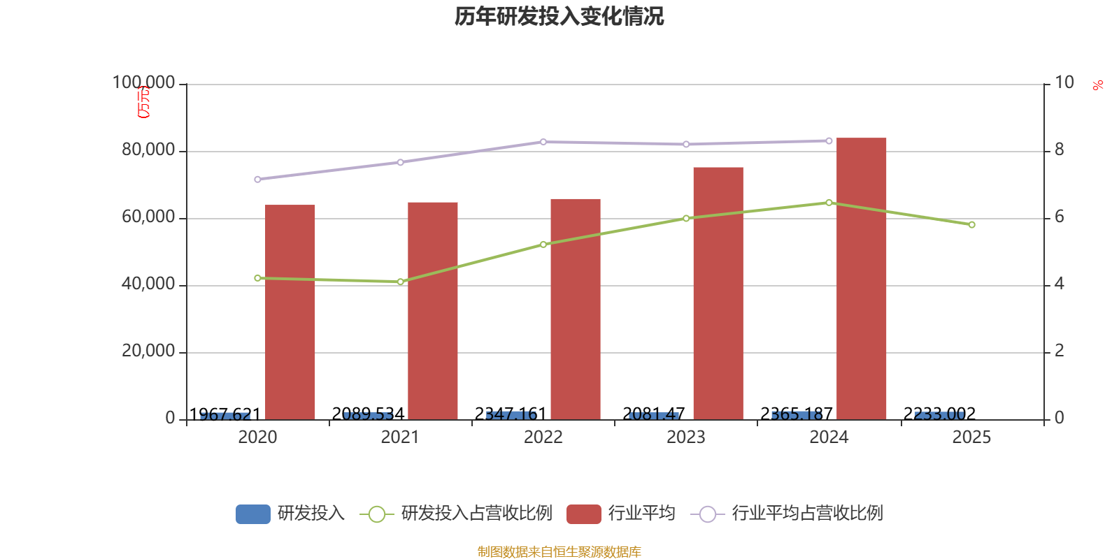 2025年全年,公司研发投入金额为2233万元,同比下降5.59%;研发投入占营业收入比例为5.8%,相比上年同期下降0.66个百分点。此外,公司全年研发投入资本化率为0%。