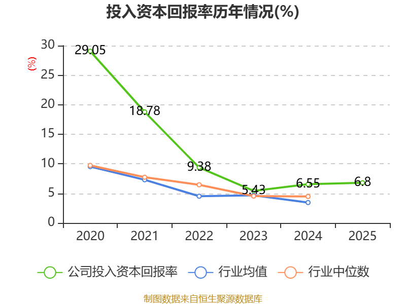 数据显示,2025年公司加权平均净资产收益率为6.94%,较上年同期上升0.38个百分点。公司2025年投入资本回报率为6.8%,较上年同期上升0.25个百分点。