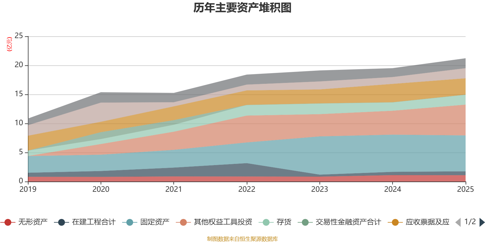 资产重大变化方面,截至2025年末,公司其他权益工具投资较上年末增加28.7%,占公司总资产比重上升3.88个百分点;固定资产较上年末减少3.59%,占公司总资产比重下降3.73个百分点;应收票据及应收账款较上年末减少11.04%,占公司总资产比重下降2.95个百分点;货币资金较上年末增加47.02%,占公司总资产比重上升2.13个百分点。