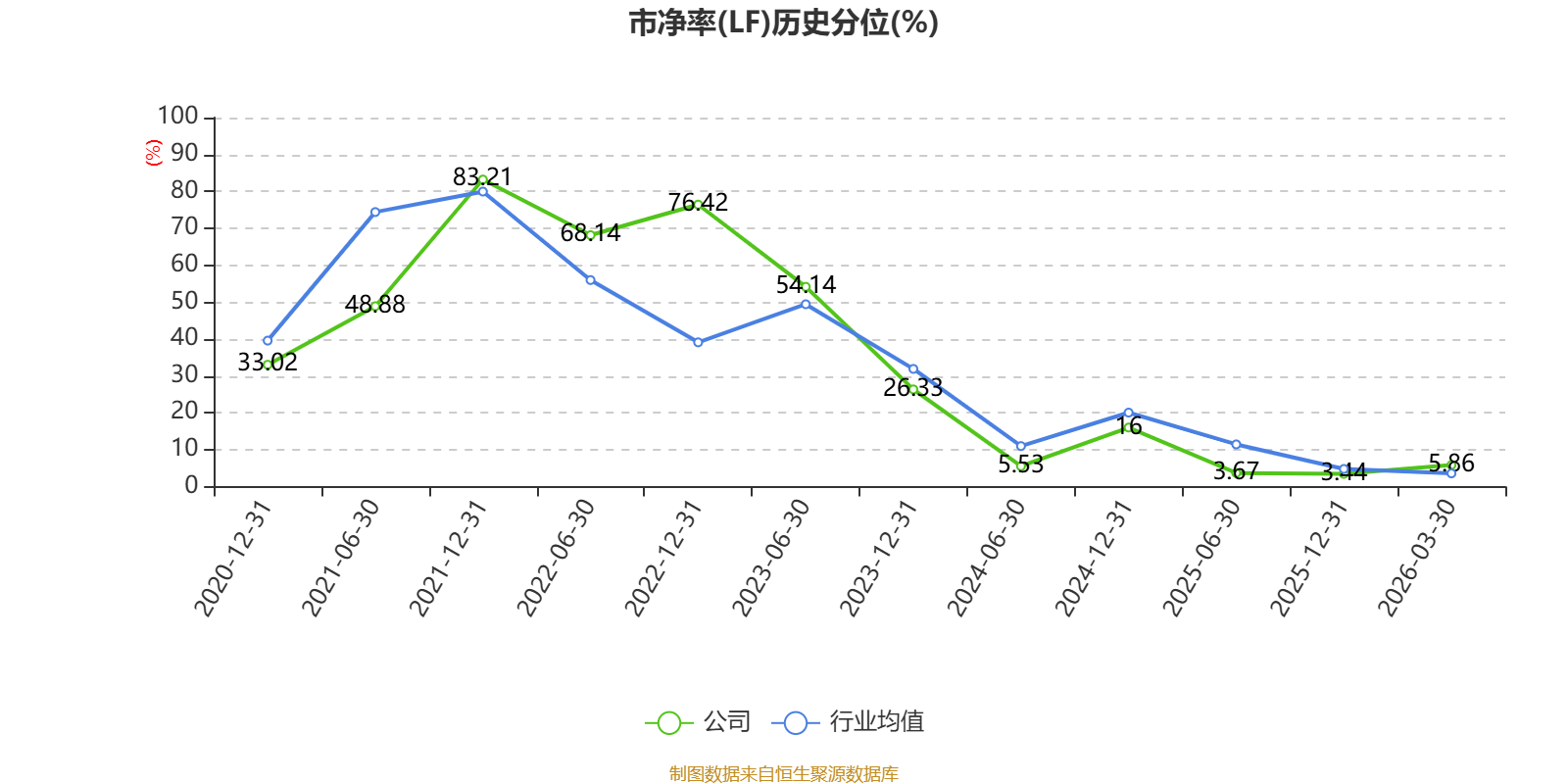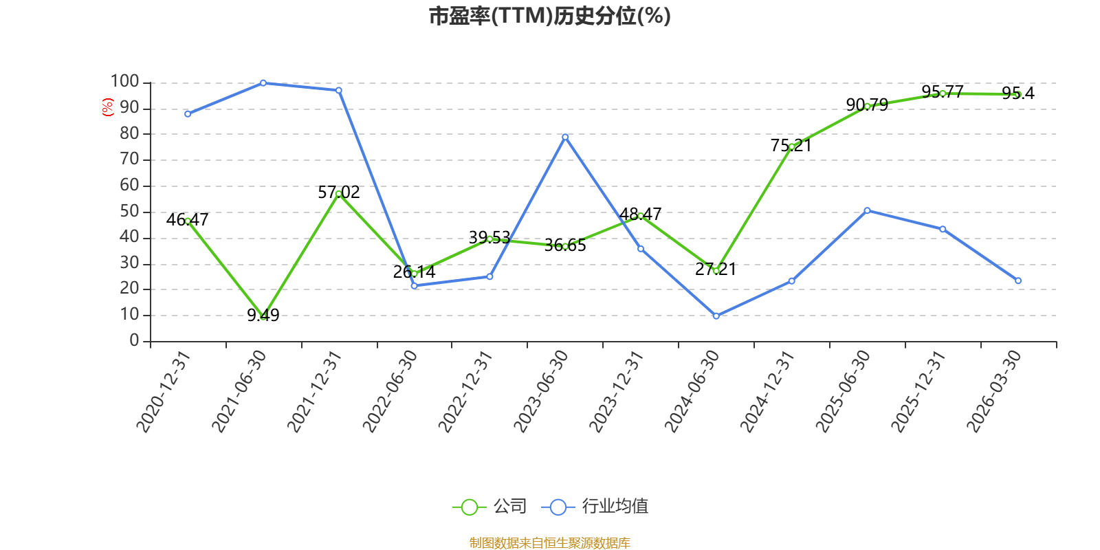 市盈率、市净率为负时,不显示当期分位数,会导致折线图中断。