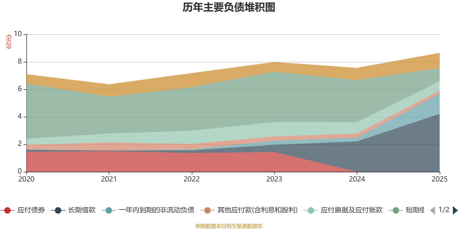 负债重大变化方面,截至2025年末,公司短期借款较上年末减少68.69%,占公司总资产比重下降11.18个百分点;长期借款较上年末增加90.05%,占公司总资产比重上升8.49个百分点;一年内到期的非流动负债较上年末增加469.5%,占公司总资产比重上升5.6个百分点;应付票据及应付账款较上年末减少17.73%,占公司总资产比重下降1.04个百分点。