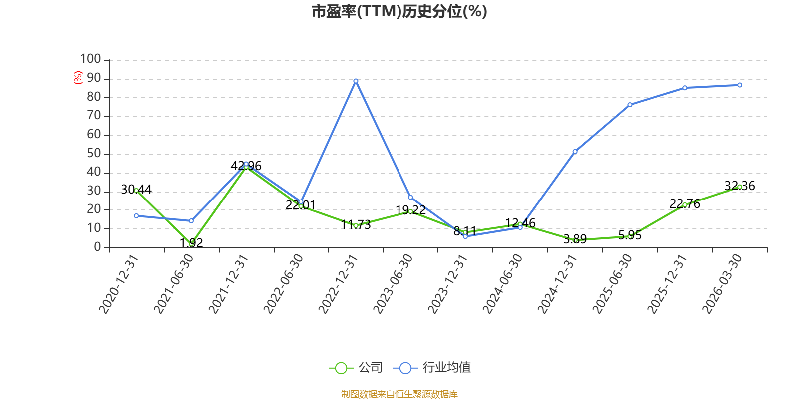 市盈率、市净率为负时,不显示当期分位数,会导致折线图中断。
