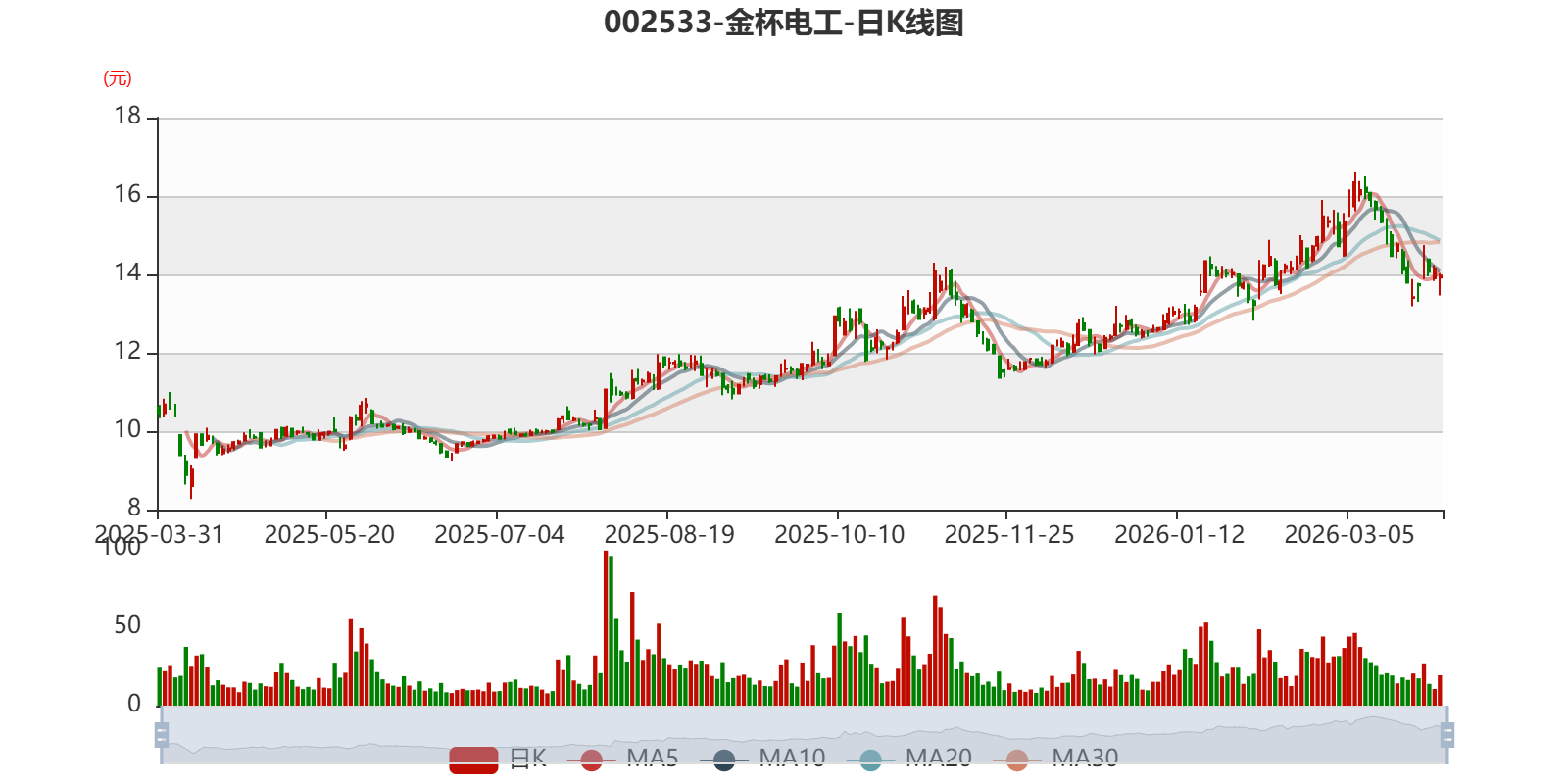 以3月30日收盘价计算,金杯电工目前市盈率(TTM)约为17.09倍,市净率(LF)约2.24倍,市销率(TTM)约0.5倍。