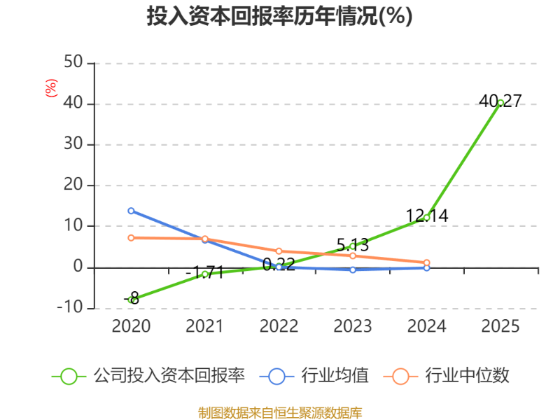 数据显示,2025年公司加权平均净资产收益率为41.32%,较上年同期上升27.85个百分点。公司2025年投入资本回报率为40.27%,较上年同期上升28.13个百分点。