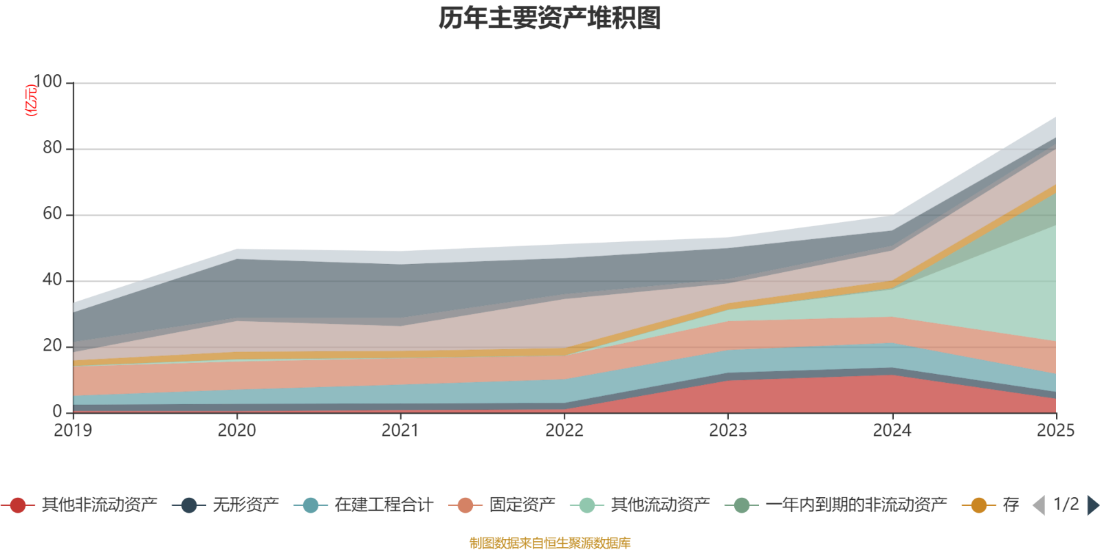 资产重大变化方面,截至2025年末,公司其他流动资产较上年末增加326.49%,占公司总资产比重上升25.44个百分点;其他非流动资产较上年末减少63.34%,占公司总资产比重下降14.4个百分点;一年内到期的非流动资产较上年末增加2145.05%,占公司总资产比重上升10.18个百分点;在建工程合计较上年末减少27.42%,占公司总资产比重下降6.49个百分点。