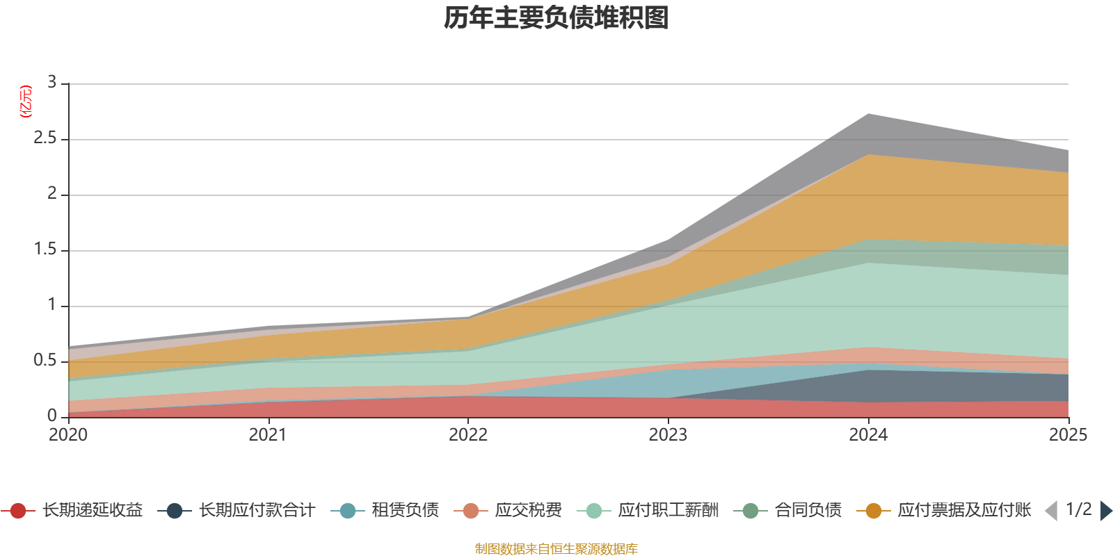 负债重大变化方面,截至2025年末,公司应付票据及应付账款较上年末减少13.93%,占公司总资产比重下降0.43个百分点;合同负债较上年末增加25%,占公司总资产比重上升0.27个百分点;租赁负债较上年末减少97.27%,占公司总资产比重下降0.27个百分点;递延所得税负债较上年末减少38.66%,占公司总资产比重下降0.23个百分点。