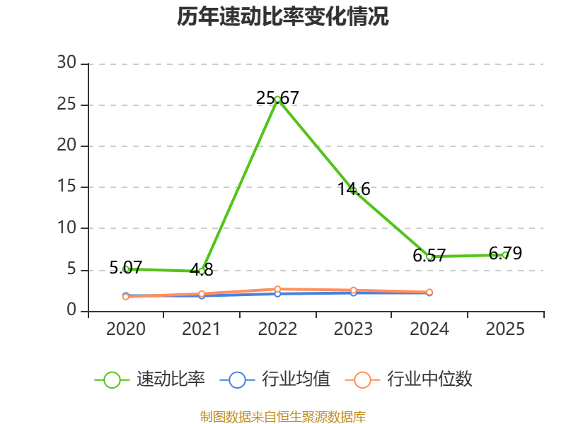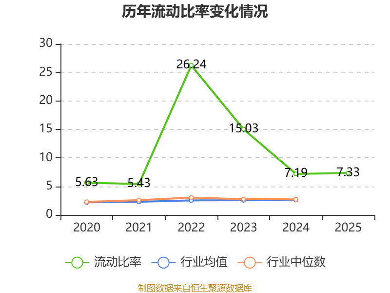 2025年,公司流动比率为7.33,速动比率为6.79。