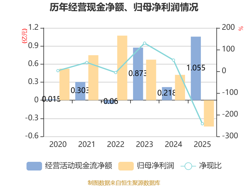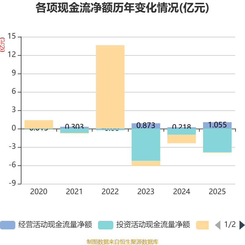 截至2025年,公司经营活动现金流净额为1.05亿元,同比增长384.19%;筹资活动现金流净额-944.17万元,同比增加1.29亿元;投资活动现金流净额-3.85亿元,上年同期为-9915.13万元。