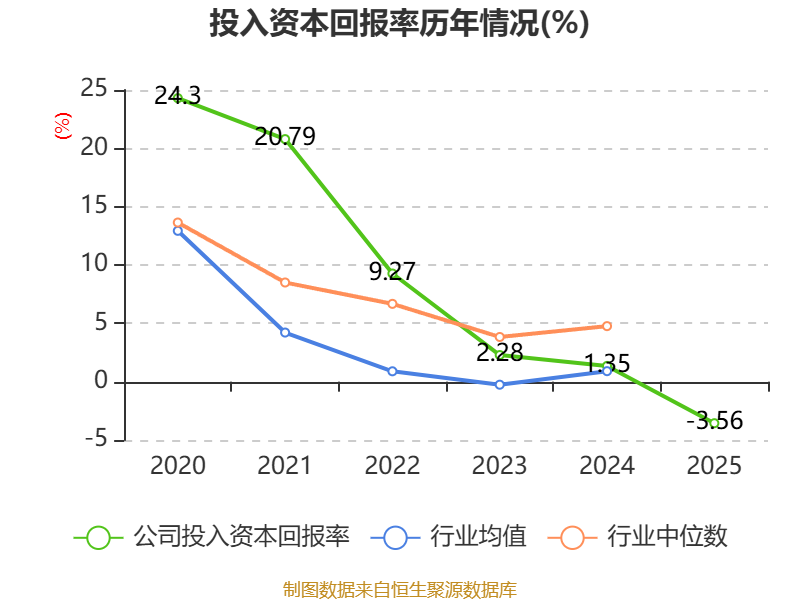 数据显示,2025年公司加权平均净资产收益率为-2.37%,较上年同期下降4.57个百分点。公司2025年投入资本回报率为-3.56%,较上年同期下降4.91个百分点。