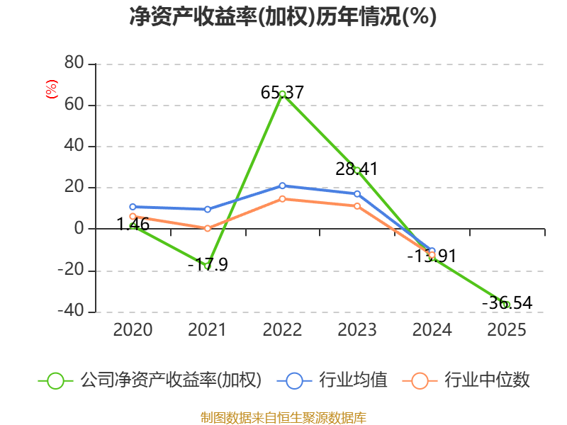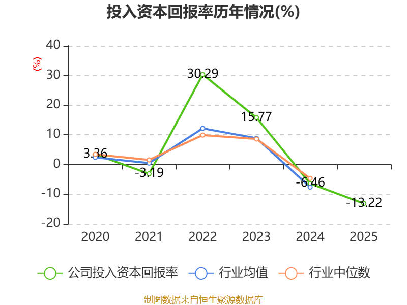 数据显示,2025年公司加权平均净资产收益率为-36.54%,较上年同期下降22.63个百分点。公司2025年投入资本回报率为-13.22%,较上年同期下降6.76个百分点。