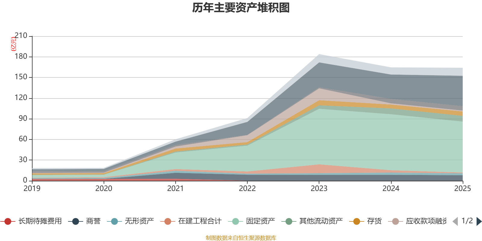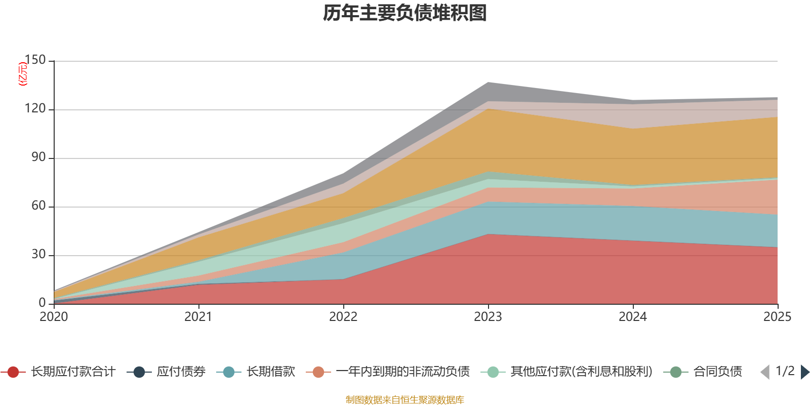 负债重大变化方面,截至2025年末,公司一年内到期的非流动负债较上年末增加99.36%,占公司总资产比重上升6.56个百分点;短期借款较上年末减少30%,占公司总资产比重下降2.73个百分点;长期应付款合计较上年末减少10.57%,占公司总资产比重下降2.42个百分点;应付票据及应付账款较上年末增加7.27%,占公司总资产比重上升1.61个百分点。