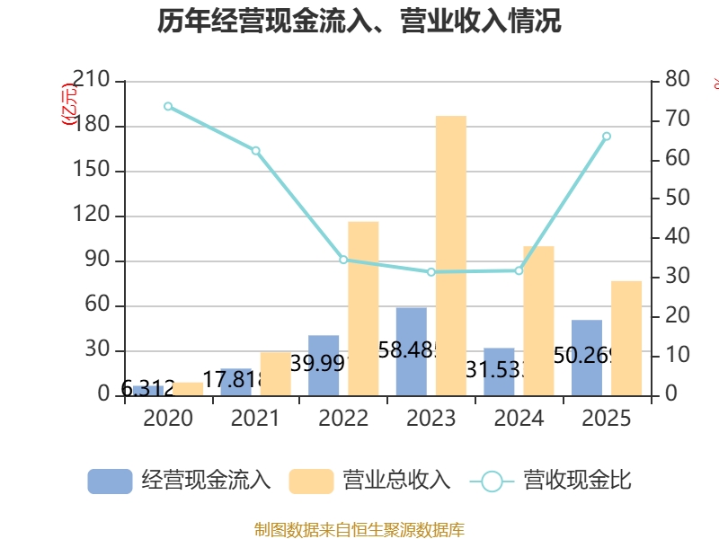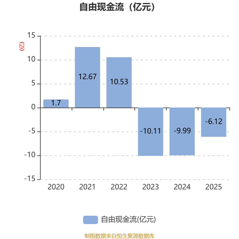截至2025年,公司经营活动现金流净额为-4.86亿元,同比减少11.4亿元;筹资活动现金流净额13.9亿元,同比增加12.14亿元;投资活动现金流净额-4.98亿元,上年同期为-8.67亿元。