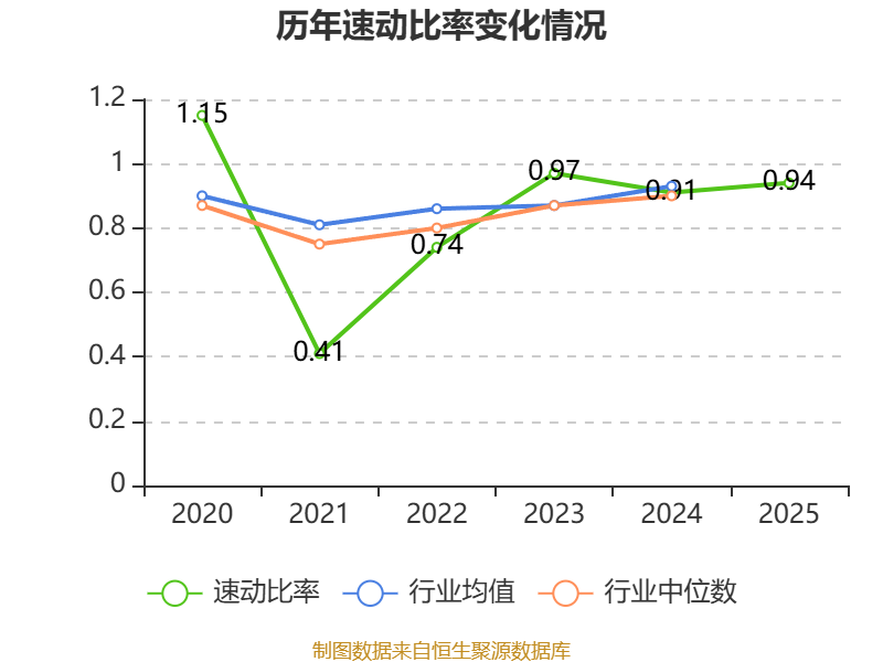 2025年,公司流动比率为1.03,速动比率为0.94。