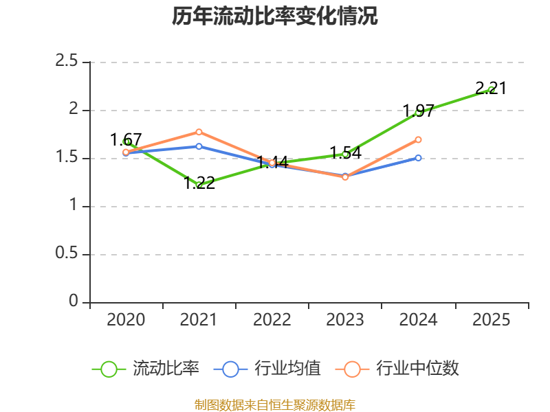 2025年,公司流动比率为2.21,速动比率为1.73。