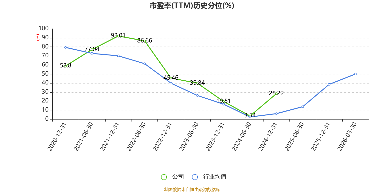 市盈率、市净率为负时,不显示当期分位数,会导致折线图中断。