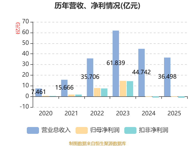 中证智能财讯高测股份(688556)3月31日披露2025年年度报告。2025年,公司实现营业总收入36.5亿元,同比下降18.43%;归母净利润亏损4058.47万元,上年同期亏损4422.79万元;扣非净利润亏损1.27亿元,上年同期亏损1.09亿元;经营活动产生的现金流量净额为-3.28亿元,上年同期为-12.61亿元;报告期内,高测股份基本每股收益为-0.05元,加权平均净资产收益率为-1.08%。