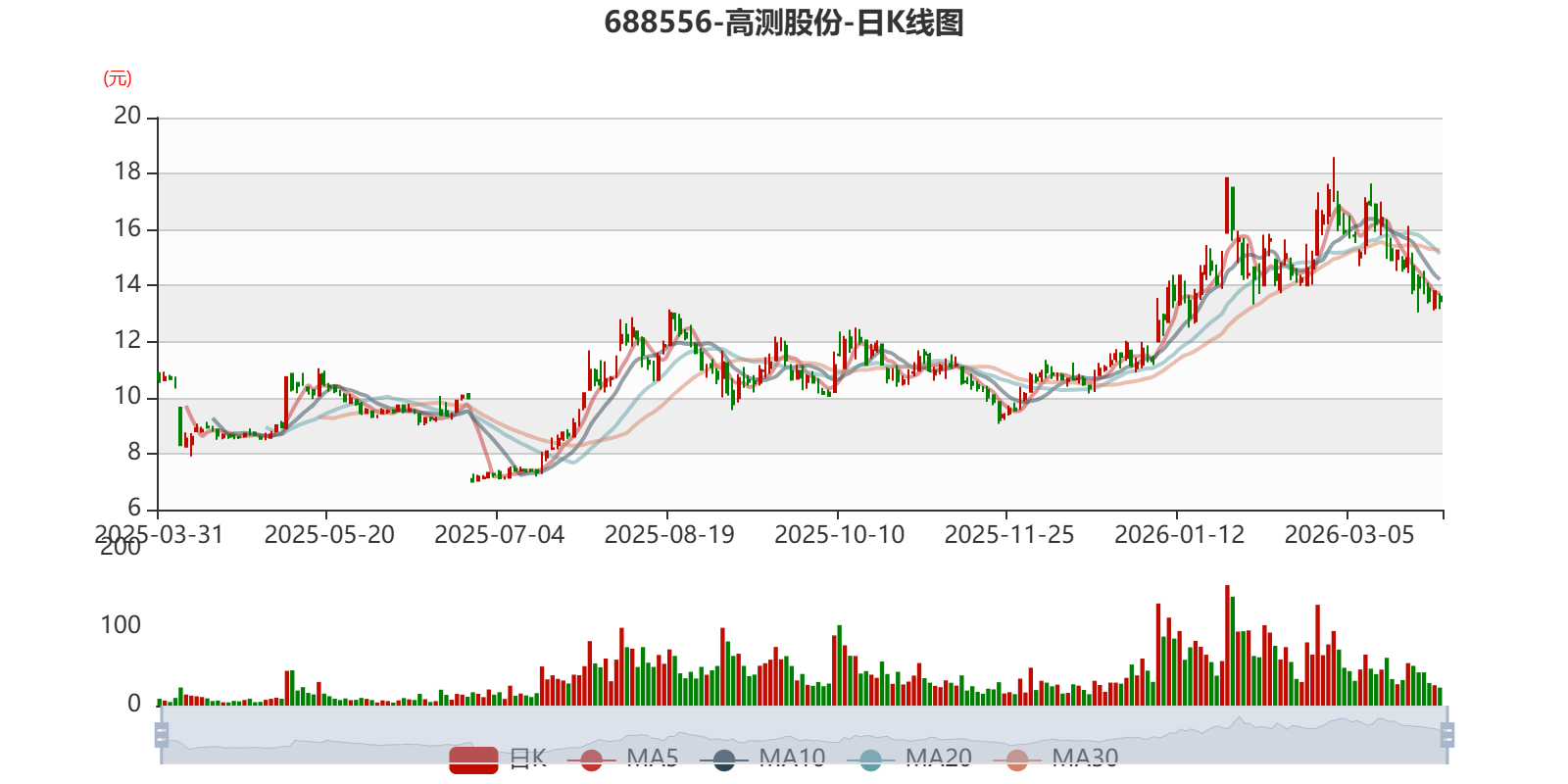 以3月30日收盘价计算,高测股份目前市盈率(TTM)约为-275.32倍,市净率(LF)约2.83倍,市销率(TTM)约3.06倍。