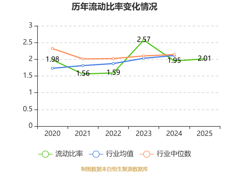 2025年,公司流动比率为2.01,速动比率为1.28。