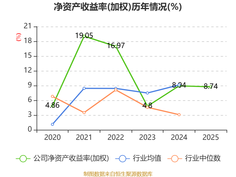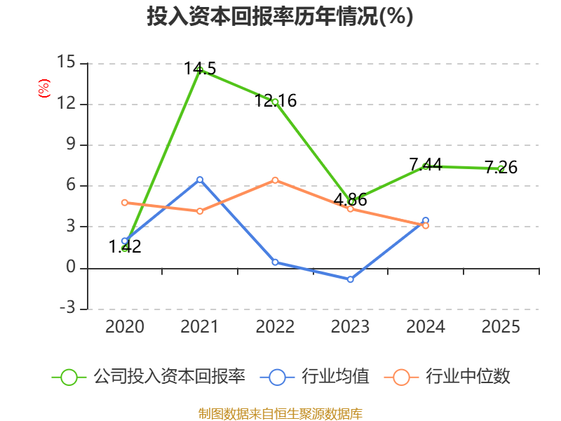 数据显示,2025年公司加权平均净资产收益率为8.74%,较上年同期下降0.2个百分点。公司2025年投入资本回报率为7.26%,较上年同期下降0.18个百分点。
