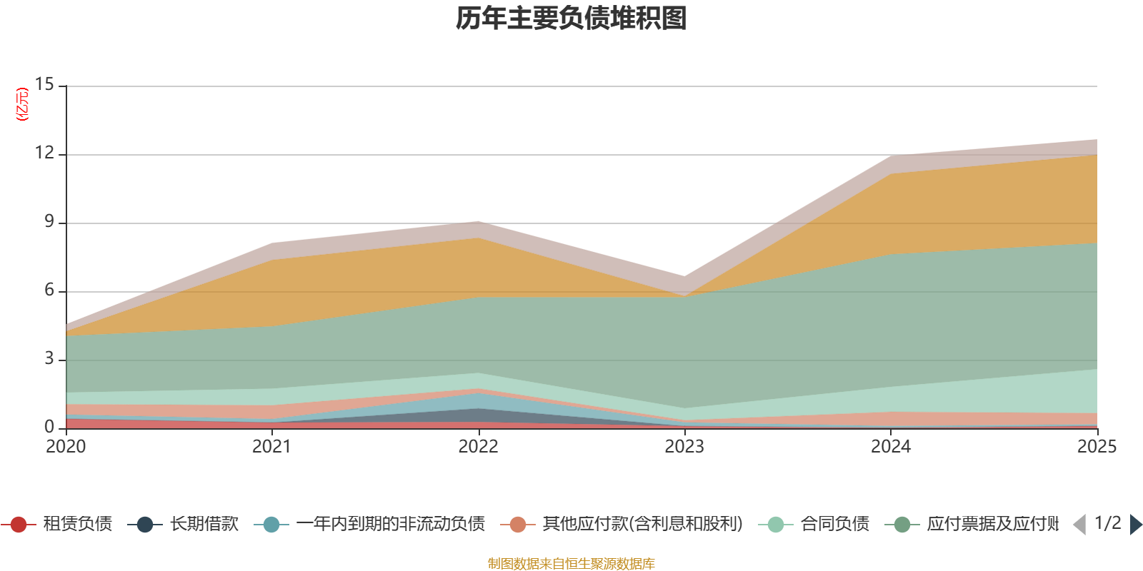 负债重大变化方面,截至2025年末,公司合同负债较上年末增加75.68%,占公司总资产比重上升2.51个百分点;应付票据及应付账款较上年末减少4.77%,占公司总资产比重下降2.4个百分点;其他应付款(含利息和股利)较上年末减少20.72%,占公司总资产比重下降0.59个百分点;租赁负债较上年末增加593.45%,占公司总资产比重上升0.28个百分点。
