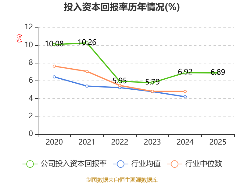 数据显示,2025年公司加权平均净资产收益率为10.07%,较上年同期下降0.34个百分点。公司2025年投入资本回报率为6.89%,较上年同期下降0.03个百分点。