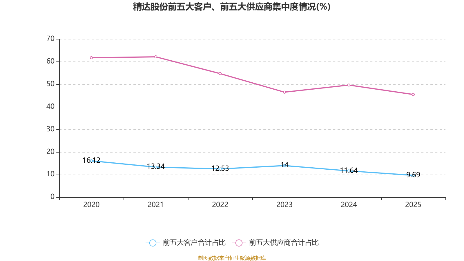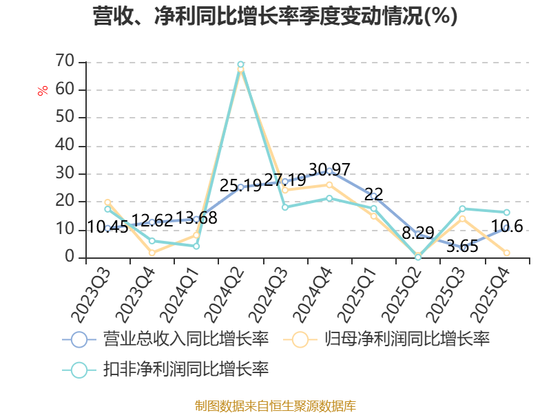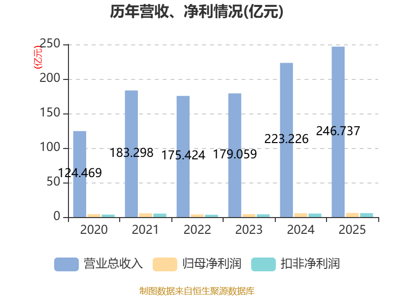 中证智能财讯精达股份(600577)3月31日披露2025年年度报告。2025年,公司实现营业总收入246.74亿元,同比增长10.53%;归母净利润5.99亿元,同比增长6.66%;扣非净利润5.7亿元,同比增长11.34%;经营活动产生的现金流量净额为24.75亿元,上年同期为-5.89亿元;报告期内,精达股份基本每股收益为0.28元,加权平均净资产收益率为10.07%。公司2025年度分配预案为:拟向全体股东每10股派现0.6元(含税)。