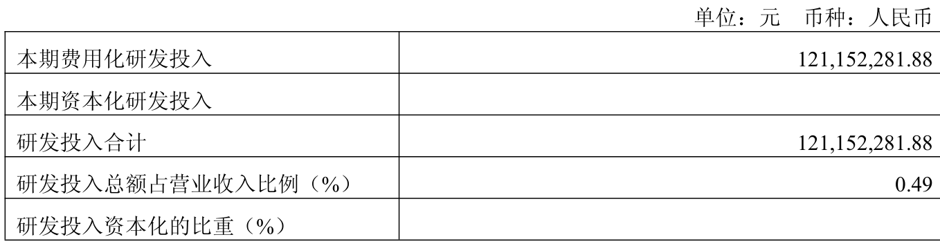 2025年全年,公司研发投入金额为1.21亿元,同比增长13.21%;研发投入占营业收入比例为0.49%,相比上年同期上升0.01个百分点。此外,公司全年研发投入资本化率为0%。