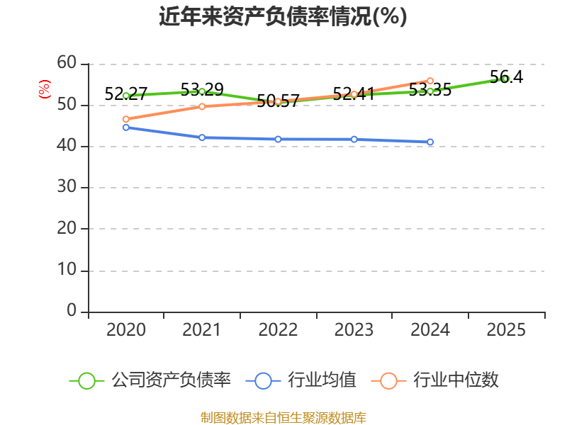 负债重大变化方面,截至2025年末,公司应付票据及应付账款较上年末增加147.28%,占公司总资产比重上升14.93个百分点;短期借款较上年末减少26.44%,占公司总资产比重下降10.11个百分点;应付债券较上年末减少100%,占公司总资产比重下降2.1个百分点;一年内到期的非流动负债较上年末增加303.06%,占公司总资产比重上升1.93个百分点。