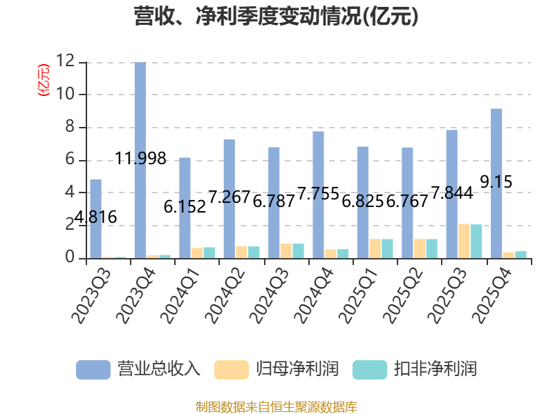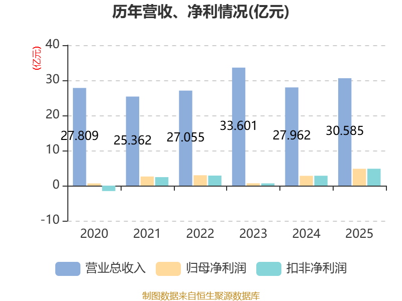 中证智能财讯粤桂股份(000833)3月31日披露2025年年度报告。2025年,公司实现营业总收入30.59亿元,同比增长9.38%;归母净利润4.8亿元,同比增长72.30%;扣非净利润4.81亿元,同比增长70.82%;经营活动产生的现金流量净额为5.74亿元,同比下降1.74%;报告期内,粤桂股份基本每股收益为0.5984元,加权平均净资产收益率为12.81%。公司2025年度分配预案为:拟向全体股东每10股派现1.8元(含税)。