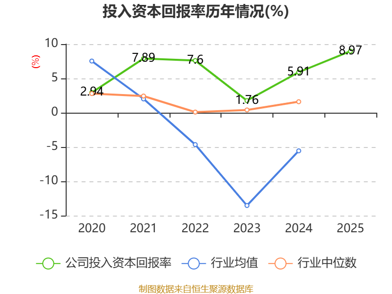 数据显示,2025年公司加权平均净资产收益率为12.81%,较上年同期上升4.7个百分点。公司2025年投入资本回报率为8.97%,较上年同期上升3.06个百分点。