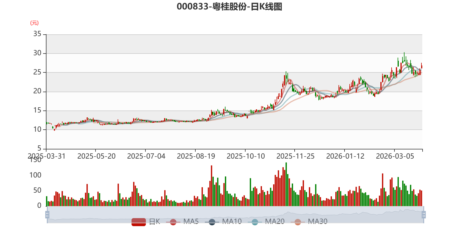以3月30日收盘价计算,粤桂股份目前市盈率(TTM)约为44.77倍,市净率(LF)约5.46倍,市销率(TTM)约7.03倍。