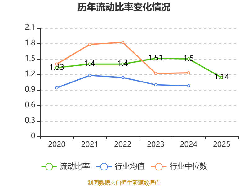 2025年,公司流动比率为1.14,速动比率为0.75。