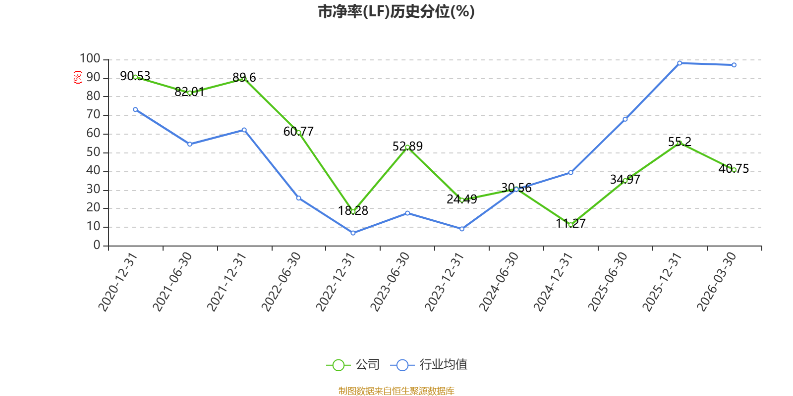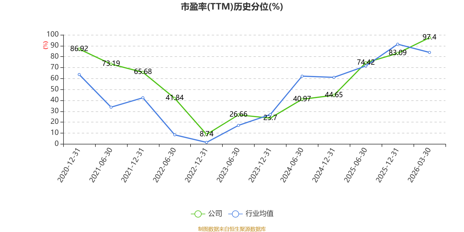 市盈率、市净率为负时,不显示当期分位数,会导致折线图中断。
