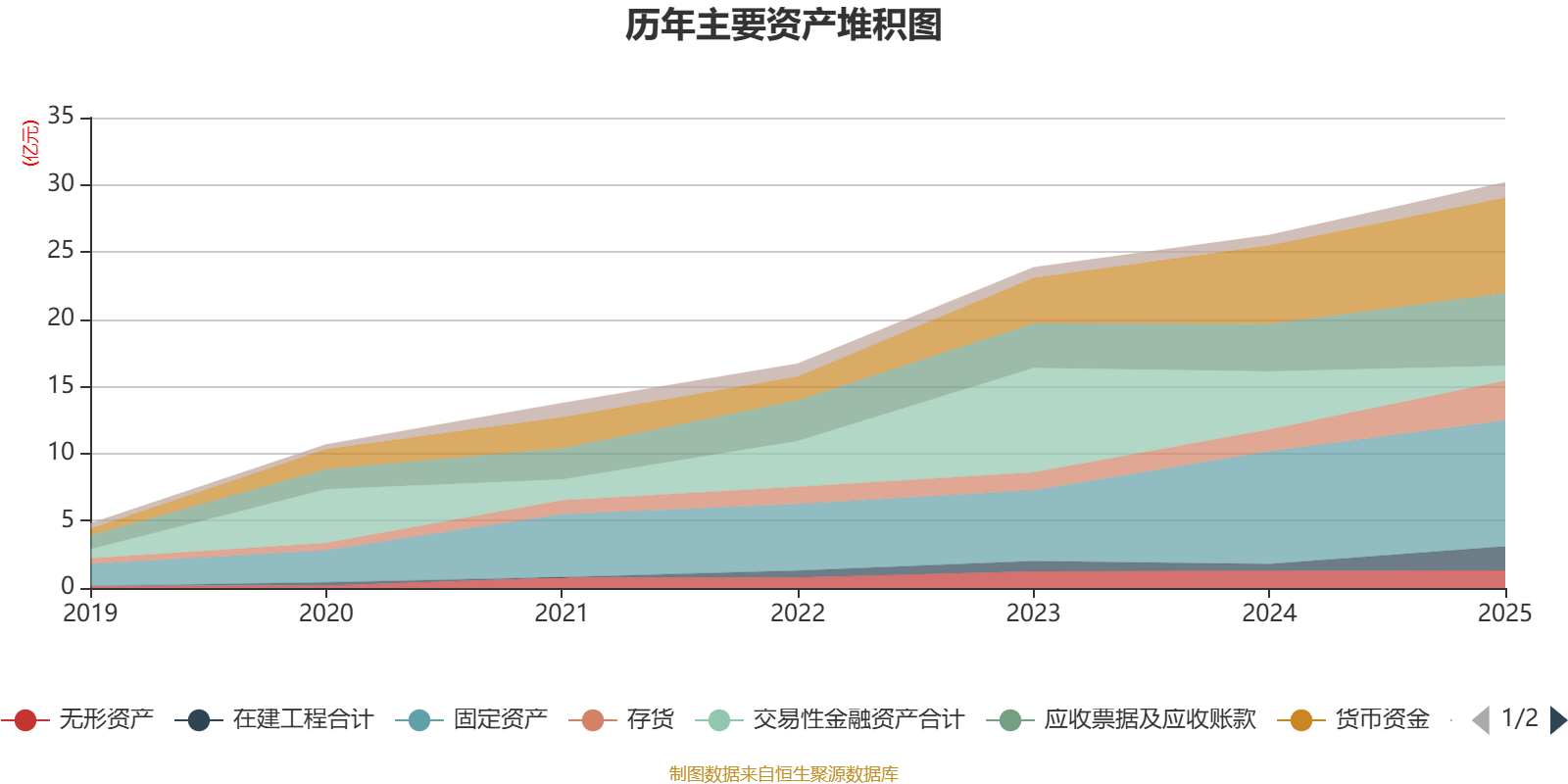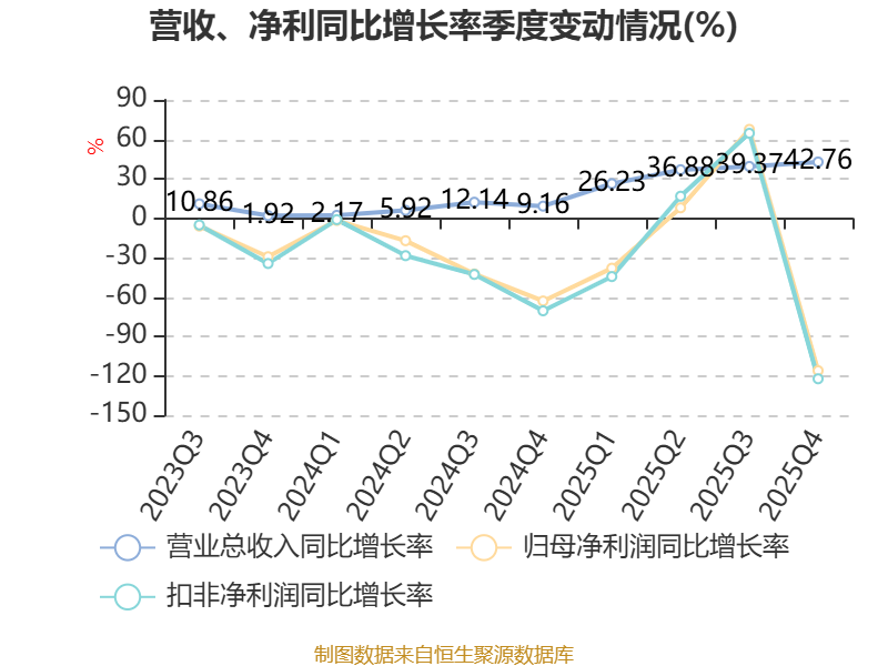 资产重大变化方面,截至2025年末,公司交易性金融资产合计较上年末减少74.2%,占公司总资产比重下降12.73个百分点;应收票据及应收账款较上年末增加52.76%,占公司总资产比重上升4.44个百分点;在建工程合计较上年末增加257.82%,占公司总资产比重上升4.02个百分点;存货较上年末增加81.48%,占公司总资产比重上升3.58个百分点。