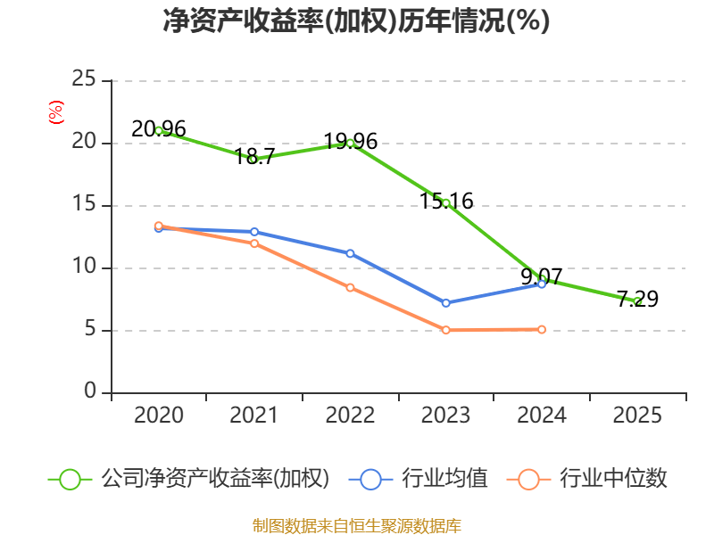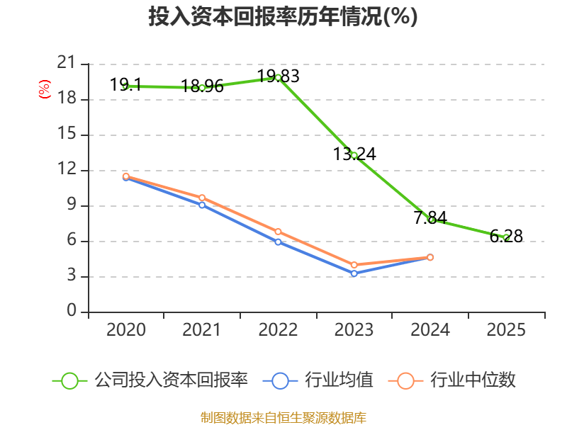 数据显示,2025年公司加权平均净资产收益率为7.29%,较上年同期下降1.78个百分点。公司2025年投入资本回报率为6.28%,较上年同期下降1.56个百分点。