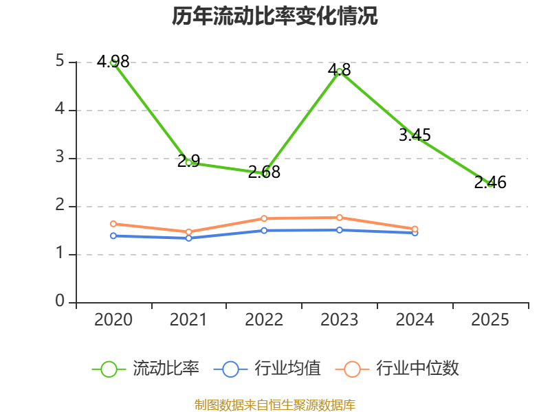 2025年,公司流动比率为2.46,速动比率为2.04。