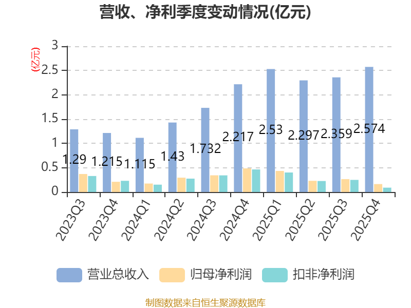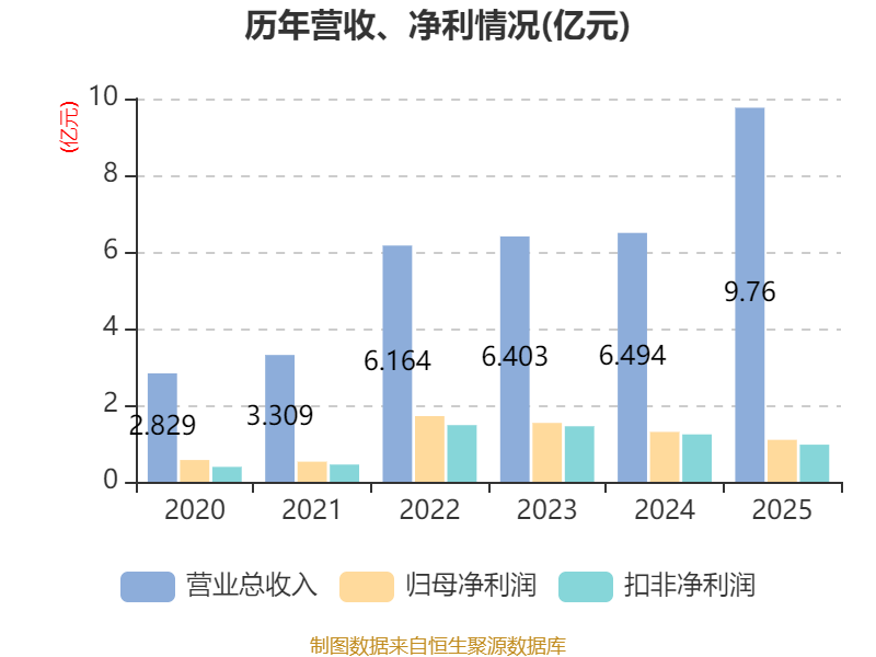 中证智能财讯同益中(688722)3月31日披露2025年年度报告。2025年,公司实现营业总收入9.76亿元,同比增长50.30%;归母净利润1.09亿元,同比下降15.92%;扣非净利润9689.28万元,同比下降21.65%;经营活动产生的现金流量净额为1.05亿元,同比下降41.41%;报告期内,同益中基本每股收益为0.49元,加权平均净资产收益率为7.82%。公司2025年度分配预案为:拟向全体股东每10股派现1元(含税)。