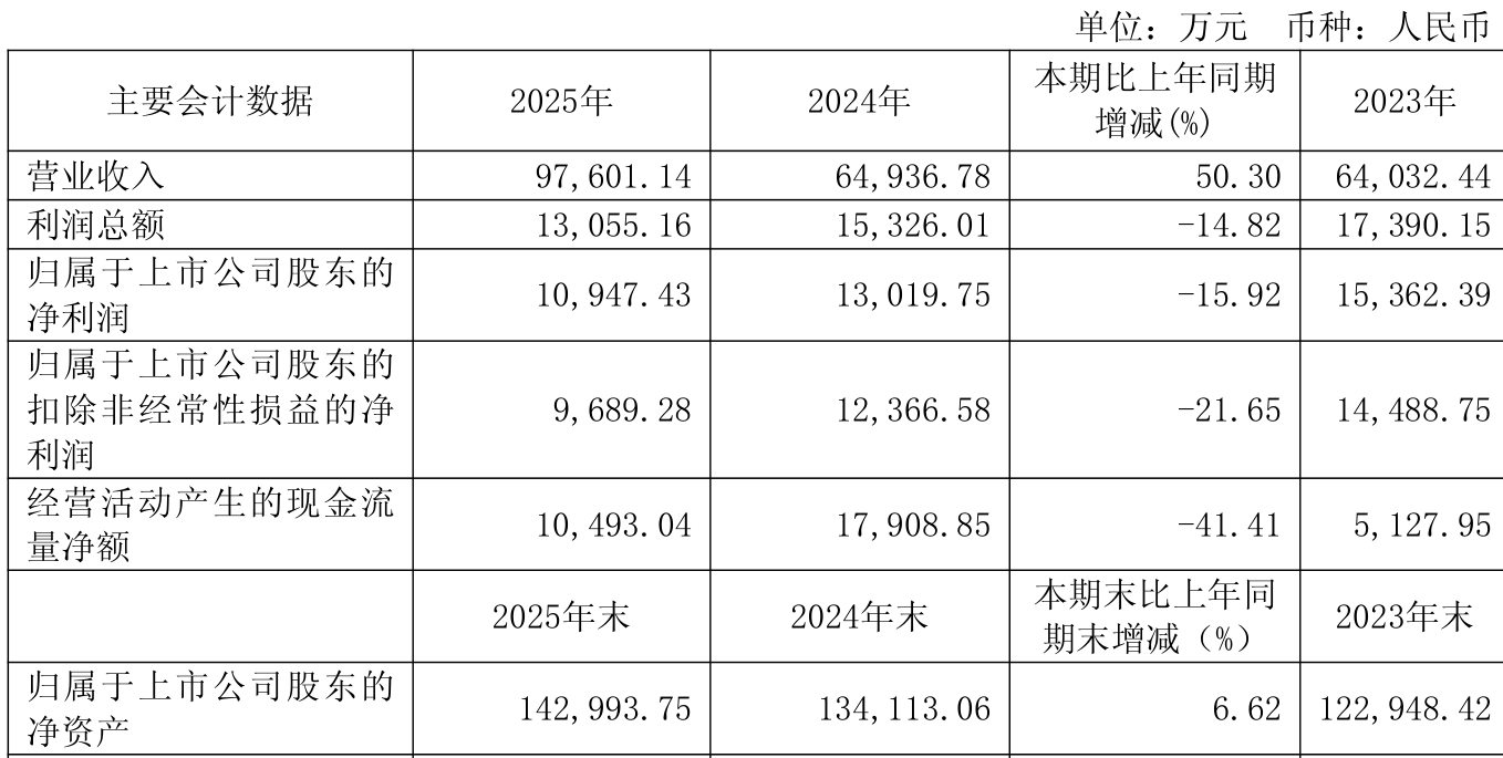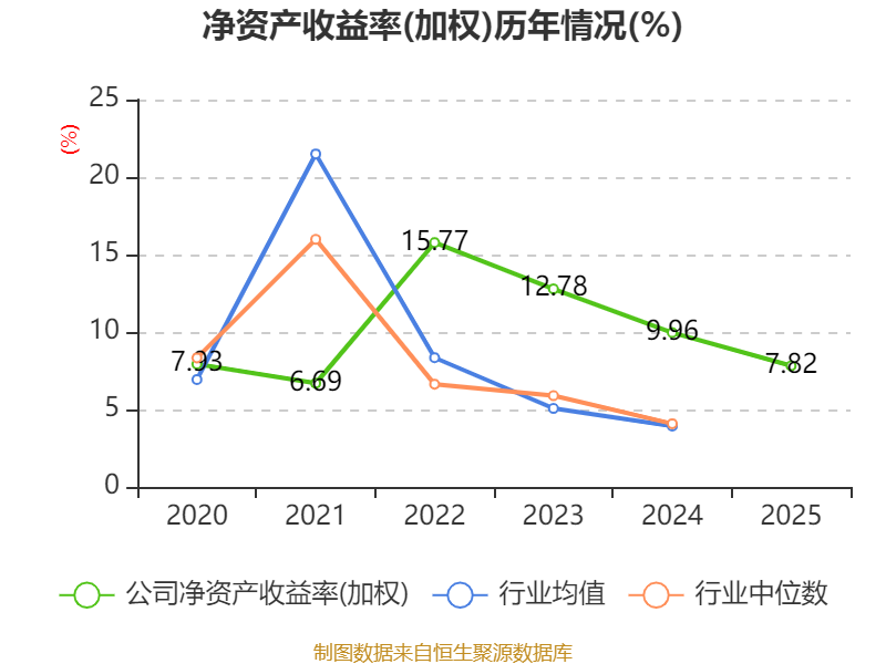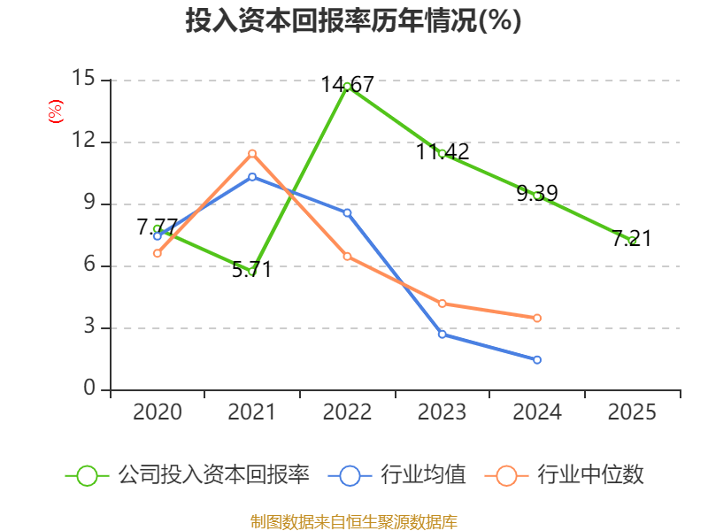 数据显示,2025年公司加权平均净资产收益率为7.82%,较上年同期下降2.14个百分点。公司2025年投入资本回报率为7.21%,较上年同期下降2.18个百分点。