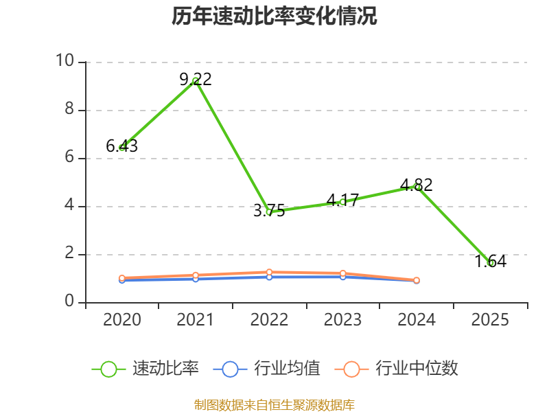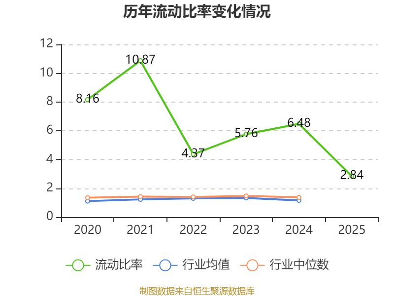 2025年,公司流动比率为2.84,速动比率为1.64。