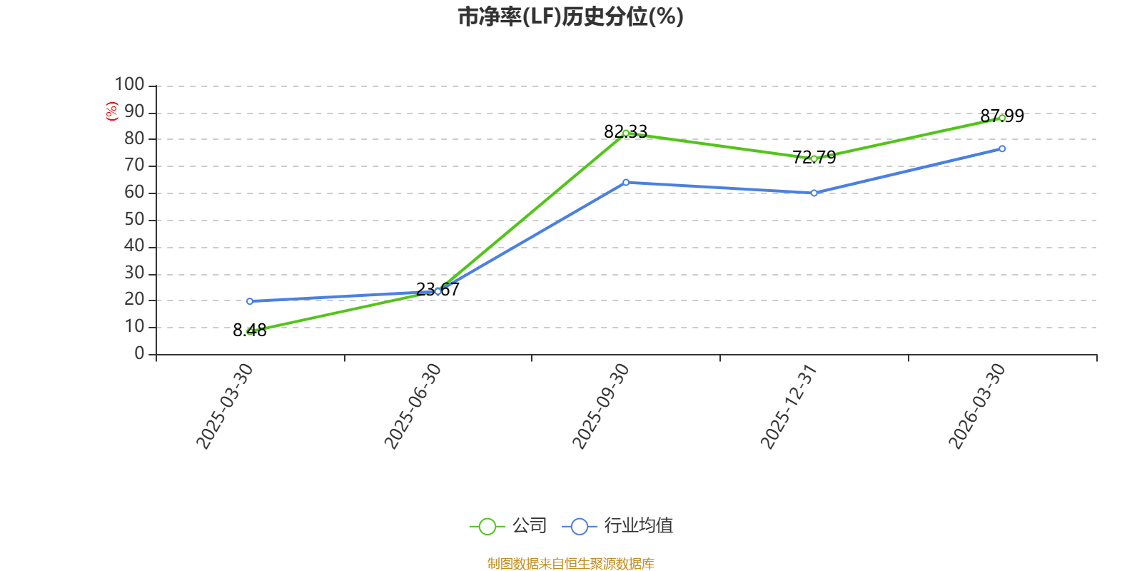 市盈率、市净率为负时,不显示当期分位数,会导致折线图中断。