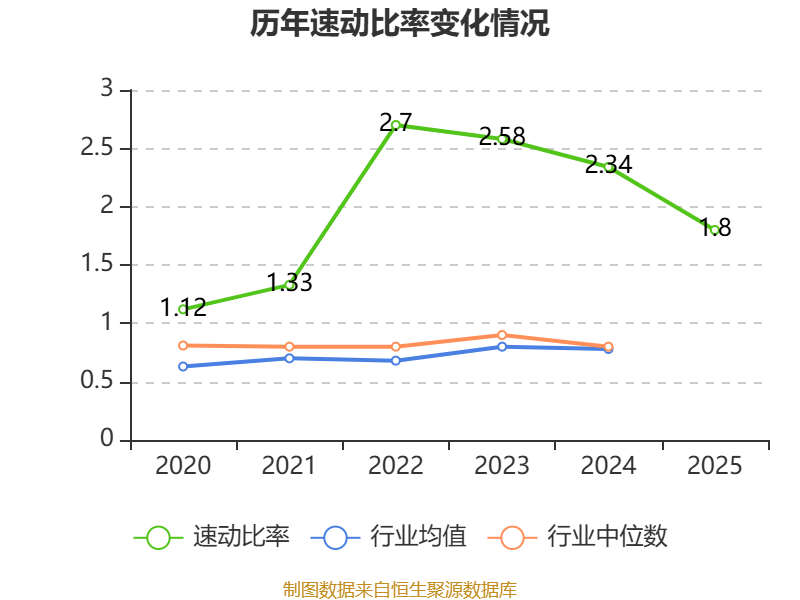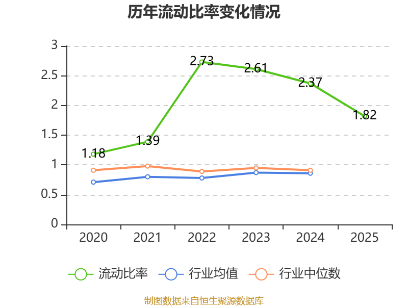 2025年,公司流动比率为1.82,速动比率为1.8。