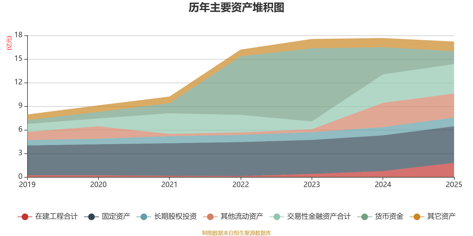 资产重大变化方面,截至2025年末,公司货币资金较上年末减少52.7%,占公司总资产比重下降10.08个百分点;在建工程合计较上年末增加139.11%,占公司总资产比重上升6.19个百分点;交易性金融资产合计较上年末增加3.62%,占公司总资产比重上升1.3个百分点;固定资产较上年末增加2.33%,占公司总资产比重上升1.29个百分点。