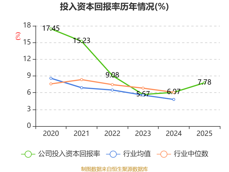 数据显示,2025年公司加权平均净资产收益率为8.26%,较上年同期上升1.55个百分点。公司2025年投入资本回报率为7.78%,较上年同期上升1.71个百分点。